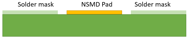 用于防止橋接的NSMD焊盤及其阻焊層凸版的側(cè)視圖。NSDM焊盤和阻焊層之間的間隙為多余的焊料提供了空間。
